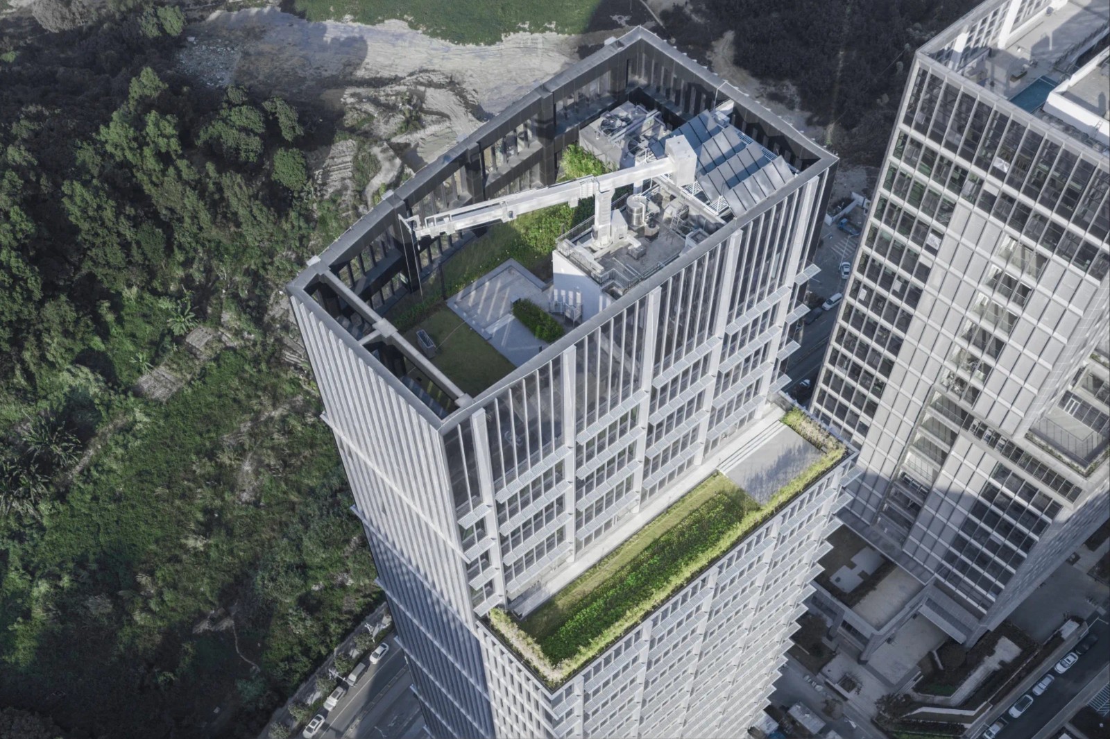 大廈在外立面設(shè)計(jì)上采用塔樓結(jié)構(gòu)突出外立面的設(shè)計(jì)方式,使得塔樓內(nèi)部形成無柱空間,極具辨識度。三種立面塔樓遮陽設(shè)計(jì)環(huán)繞大樓不同立面形成富有韻律、獨(dú)特且連續(xù)的特色肌理,并為每個(gè)辦公樓層都提供了絕佳的景觀視野。除每層的陽臺之外,室外景觀覆蓋四季常綠的草地與灌木,木制活動(dòng)平臺與休憩空間成為可以參觀、交流和休憩空中公共層,整體貫徹節(jié)能理念。